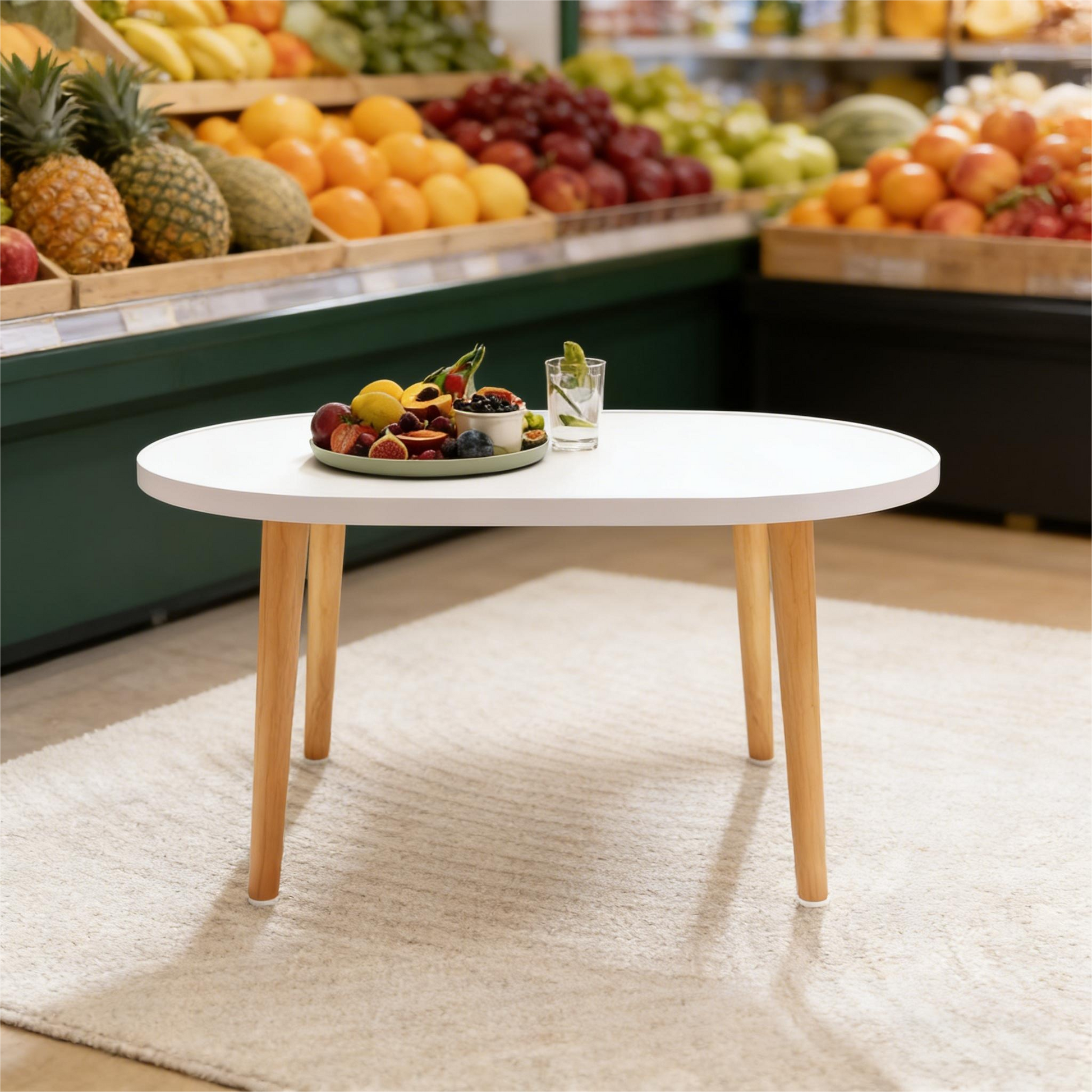 • Sleek Design: Oval white tabletop + light wooden legs, fits minimalist/modern interiors.